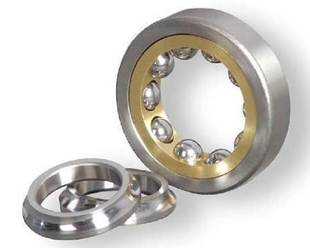 双列角接触球轴承能承受较大的径向负荷为主的径向和轴向联合负荷和力矩负荷,限制轴的两方面的轴向位移。主要用于限制轴和外壳双向轴向位移的部件中双列角接触球轴承内、外圈之间的可倾斜性有限,允许倾斜角取决于轴承的内部间隙、轴承尺寸、内部设计及作用于轴承上的力和力矩,而Z大允许倾斜角应保证轴承内不会产生过高的附加应力。若轴承内、外圈之间存在倾斜角,将影响轴承的寿命,同时造成轴承运转精度下降,运转噪声增大。双列角接触球轴承一般采用尼龙保持架或黄铜实体保持架。双列角接触球轴承安装时应注意,虽然轴承可承受双向轴向载荷,但若一侧有装球缺口时,则应注意不要让主要轴向载荷通过有缺口的一侧沟边。在轴承使用时应注意使不带装球缺口的一侧滚道承受主要载荷。